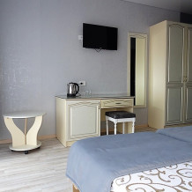 Для гостей предоставляются комфортабельные номера, оснащенные удобной мебелью, холодильником, телевизором, кондиционером. Во всех номерах есть санузел с душем, чайник, сейф, а также доступ к интернету.