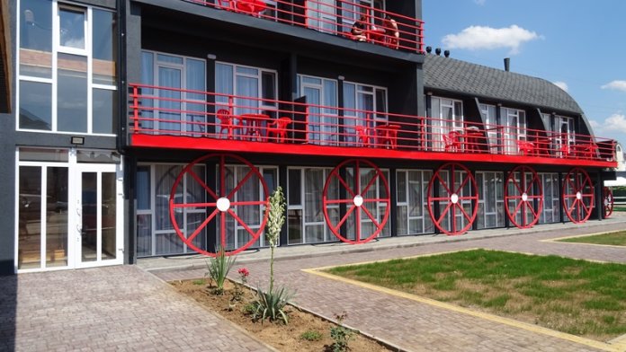 Необычный внешний вид, выполненный в виде паровоза, непременно заинтересует туристов, которые планируют приехать к морю вместе с детьми.