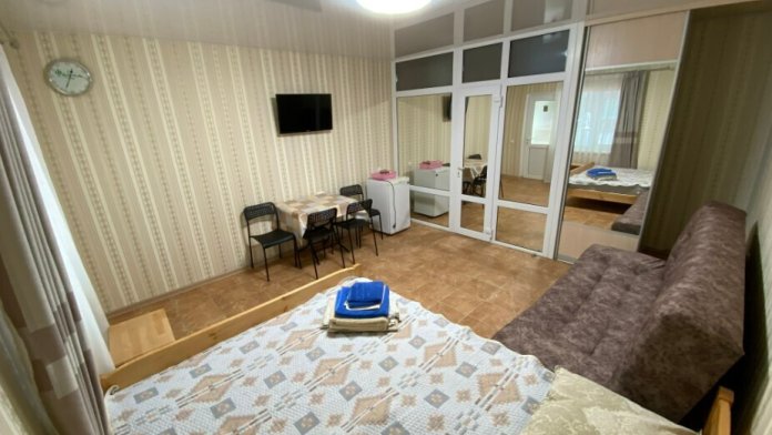 Гостевой дом «Фаина» в Судаке предлагает для отдыха комфортабельные номера 2,3,4-местные с выходом на балкон оснащены кондиционером, LED телевизором, холодильником и сейфами. В номерах установлены санузлы и душ.
