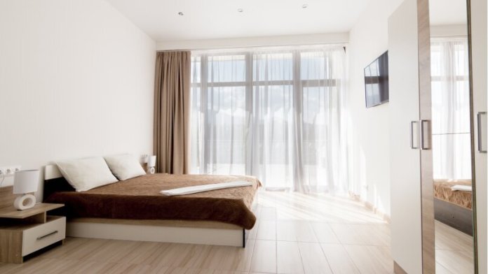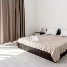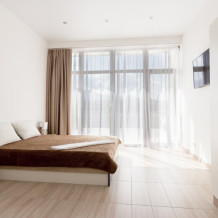 Светлый номер, панорамные окна в пол. Отдельный вход на гостевой этаж. Новая мебель и сантехника. Имеет выход на большую открытую террасу с видом на горы Демерджи и Чатыр-Даг. В номере: двуспальная кровать с прикроватными тумбами и бра, cобственный санузел с просторным душевым уголком (тропический душ, ручной душ), собственная терраса со столиком и креслами, шкаф и комод для одежды и личных вещей, Smart-TV LED, бесплатный высокоскоростной Wi-Fi интернет, кондиционер, теплый пол.