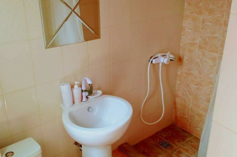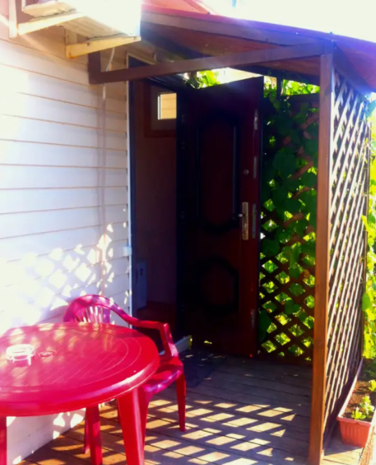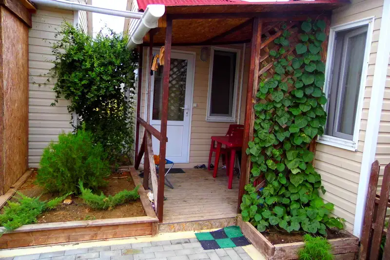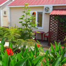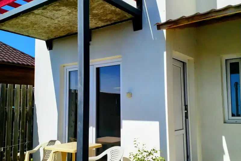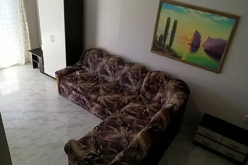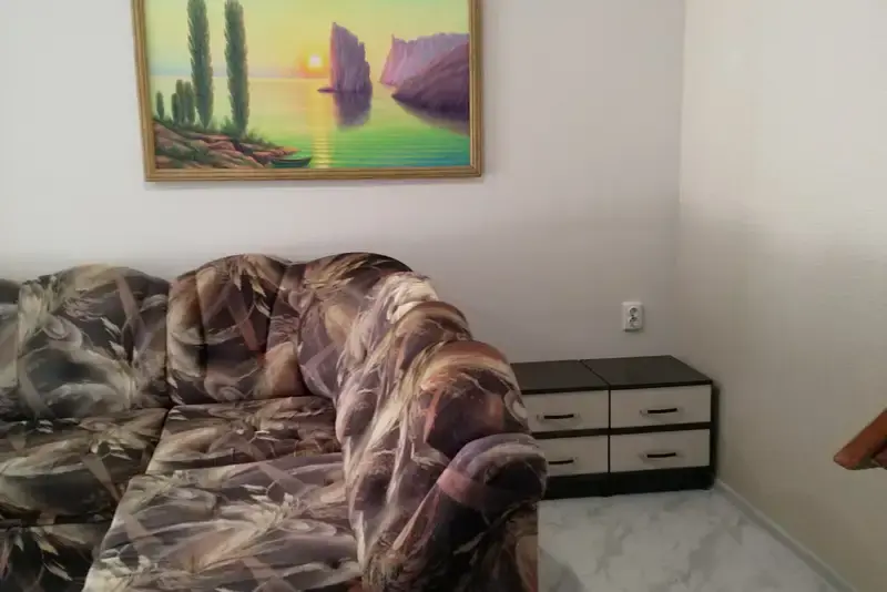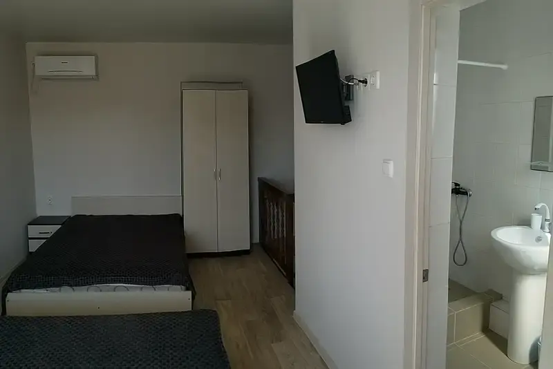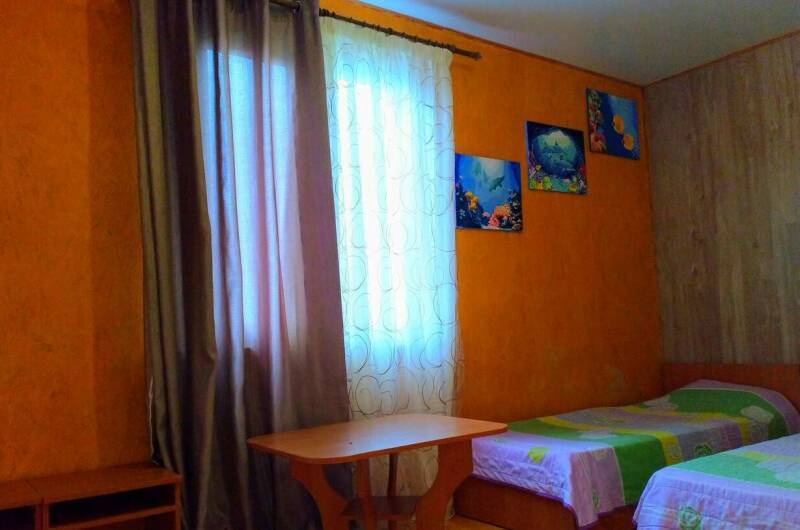 1-комнатный домик со всеми удобствами. Санузел с душевой, где есть постоянно холодная и горячая вода. В комнате двухспальная кровать и односпальная и, при необходимости есть возможность поставить дополнительно, ещё одну, полноценную кровать.