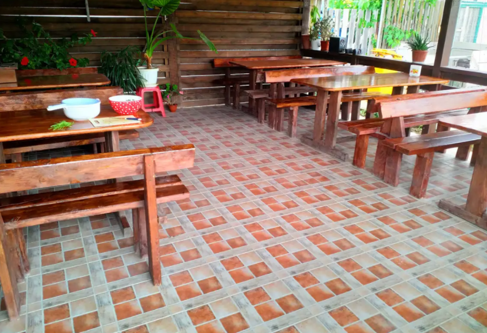 Каждый домик и номер, с туалетом и душем, с горячей и холодной водой. Каждый домик и номер, с холодильником, кондиционером и телевизором, интернет WiFi. В домике и номере, новая мебель, кровати с ортопедическими матрасами. На территории отдельная кухня-столовая, с возможностью приготовления пищи самостоятельно, весь необходимый инвентарь имеется. Так же в сфере услуг, мы можем Вас обеспечить трёхразовым питанием.