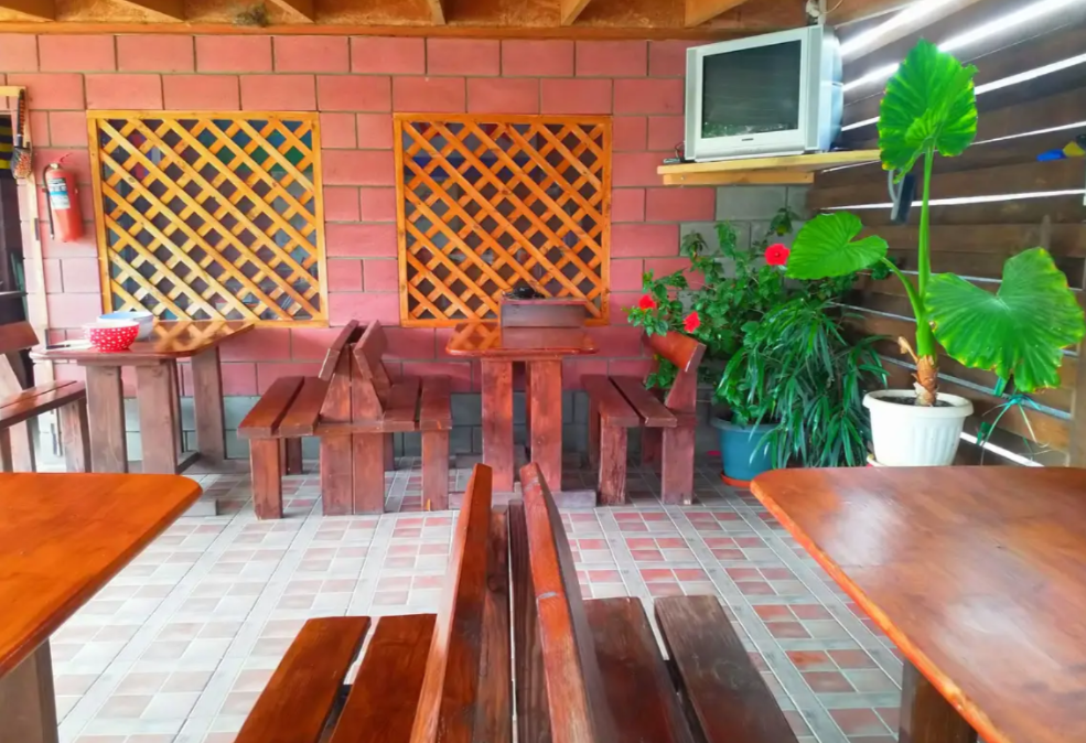 В домике две комнаты. Комната спальня, где есть двуспальная кровать и комната гостевая где стоят два раскладывающихся, двухспальных дивана. В домике свой санузел, где есть душевая с постоянно горячей и холодной водой.
