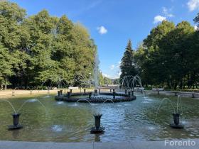 Сад возле собора — это удивительно уютное и живописное пространство, идеально подходящее для отдыха и прогулок. Здесь установлены четыре одинаковых фонтана, каждый из которых представляет собой большую круглую чашу, из которой вверх поднимаются прозрачные хрустальные струи воды. Два фонтана размещены рядом по одной стороне Смольного собора, между ними разбита широкая цветочная клумба. Два других расположены симметрично с противоположной стороны. Торжественное открытие этих сооружений состоялось в 1934 году, и с того момента фонтаны придали саду особый шарм и изящество