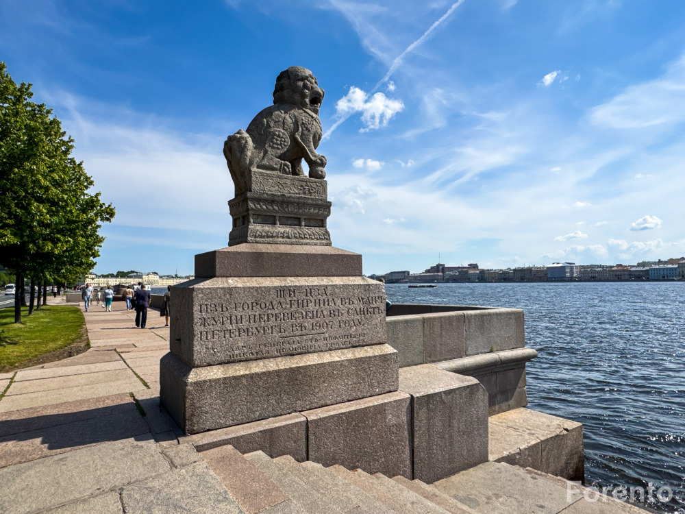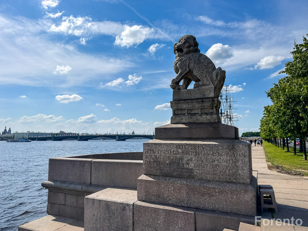 Интересно, что у пары скульптур есть символические различия: лев-папа держит под лапой шар, символизирующий власть и силу, а львица-мама оберегает львенка, что олицетворяет заботу и продолжение рода. Эта пара гармонично дополняет атмосферу Петровской набережной, привлекая внимание горожан и гостей Санкт-Петербурга.
