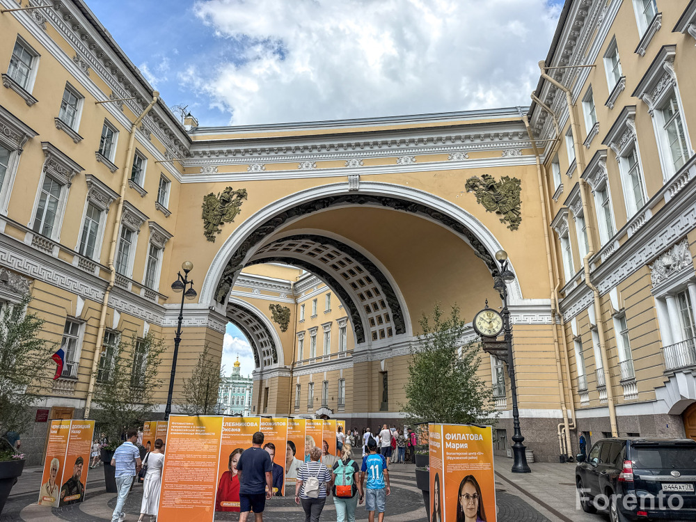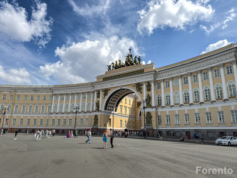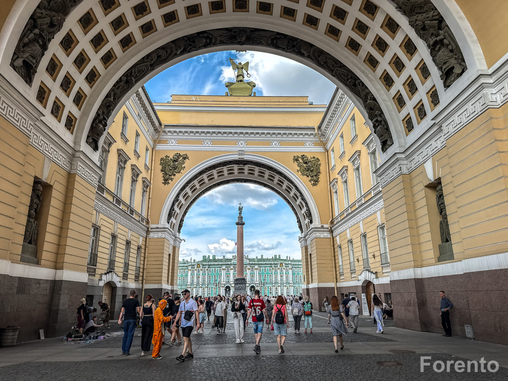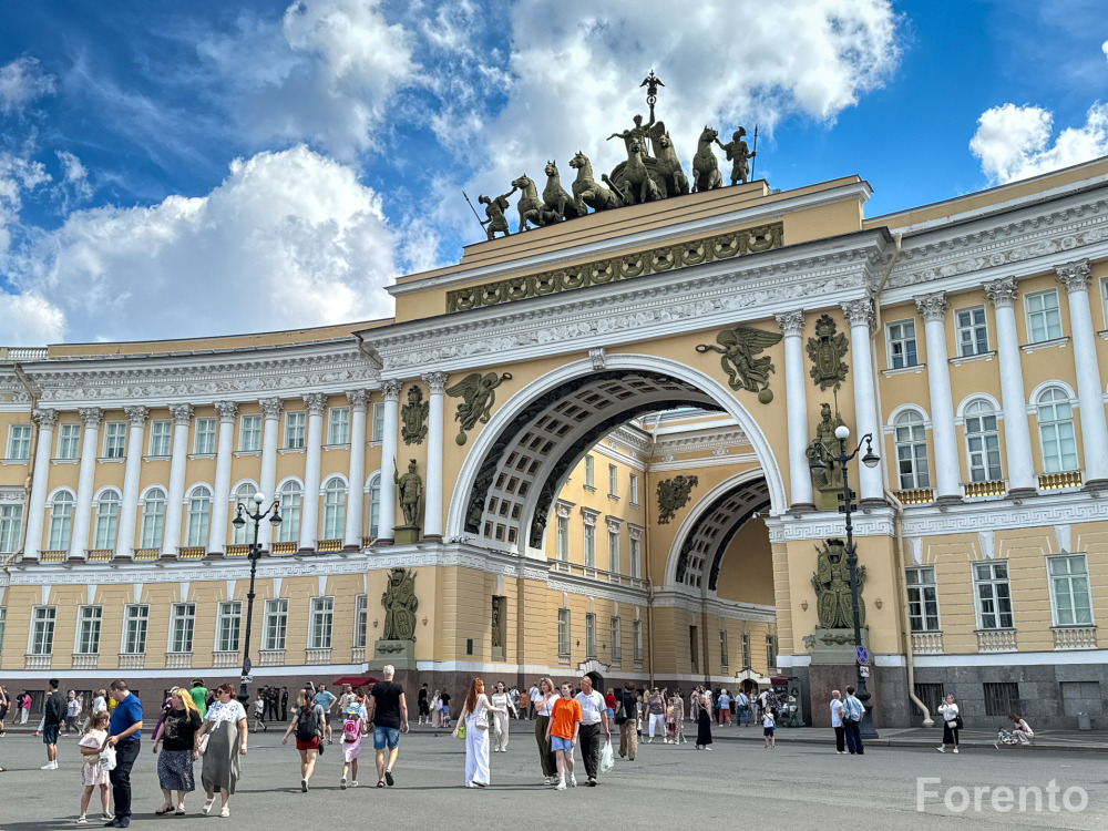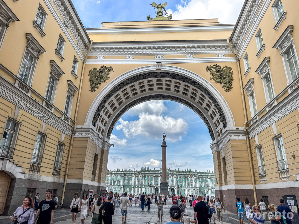 На самом деле архитектурный ансамбль включает не одну, а три арки, ведущие от Дворцовой площади на Большую Морскую улицу. В XIX веке этот участок улицы до Невского проспекта назывался Луговой Миллионной и Малой Миллионной улицей. Пройдя под аркой, можно ощутить величие эпохи — каждый элемент декора несёт в себе символику воинской славы и побед.