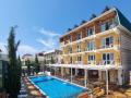 На этом, в принципе все, что можно назвать о комфортном ( именно Комфортным) пребывании в этом отеле! Потому что для нас главные критерии - это близость к морю, пляж и удобные кровати! К сожалению, последнего, т.е. удобных кроватей, мы не обнаружили ((( Это минус к хозяевам отеля! С виду у них все дорого, богато, золотые львы, колонны повсюду, внутри мраморная или гранитная лестница, гобелены во всю стену в золотых рамах, а в номерах убого и некомфортно! Двуспальная кровать всего 160 см шириной, матрас это вообще отдельная история: один переворачивается, а другой подпрыгивает до потолка, пружины упираются в бока. Выбирали двухкомнатный номер с двумя дополнительными раскладывающимся креслами, так как у нас 2 взрослых разнополых ребёнка, а когдавошли в номер, оказался один диван! Принесли раскладушку! Это одно название! Где они такую нашли? Матрас тоненький, весь сваленный! Называется ребёнок приехал на отдых спать как на нарах! Принесли ещё матрасы! Устроили перину, но все равно это особо не помогло! В ванной душ висит только в одной позиции на уровне груди, стоять и мыться невозможно! Зато огромный плюс - Вода горячая есть всегда, в любое время! И ещё казус! Когда бронировали отель через агенство, ребёнок 16 лет шёл как ребёнок, по приезду он оказался взрослым! И соответственно стоимость за него выросла! Мне так и не смогли объяснить почему? Он также как и ребёнок 10 лет спал на дополнительном месте, завтрак у всех был одинаковый, не шведский стол, поэтому больше он съесть не мог! Завтраки, которые входят в стоимость ужасные и однообразные: каша, каждый день либо глазунья, либо типа омлета и выпечка! Выпечка разная и вкусная! В общем, мы поели в отеле 3 дня, устали от яиц, и пошли кушать либо в столовую, либо в кафе на берегу! Мое мнение, надо не гобелены в отеле вешать, а купить качественные матрасы на кровать! И за такую стоимость могли бы и пляжные полотенца выдавать, а то с собой везти из дома 4 полотенца, это много места в чемодане занимать! Есть над чем работать хозяевам отеля!!! Хочу отметить массажистку в отеле! Супер!!! |